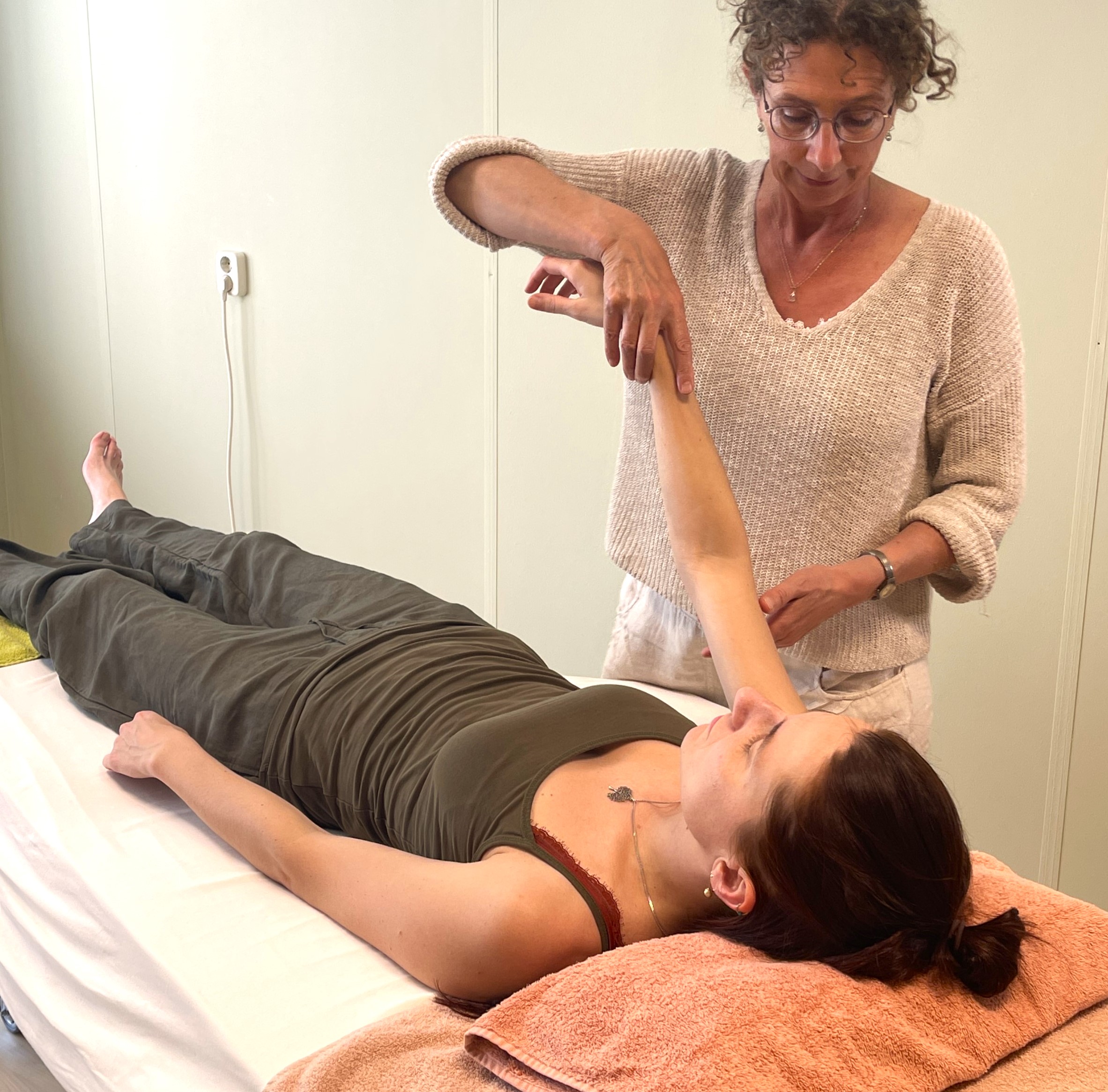 Met behulp van een lichte druk op de armspier wordt contact gemaakt met de energie van het lichaam. Door gebieden of meridianen op het lichaam aan te raken reageert de spier.